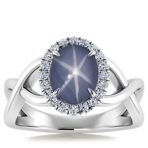 3.19ct Star Sapphire set in Halo Vined Natural Diamond Ring