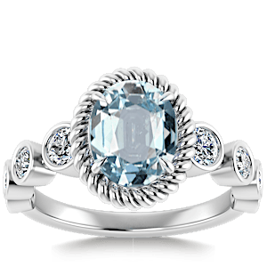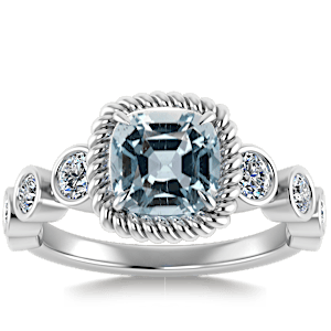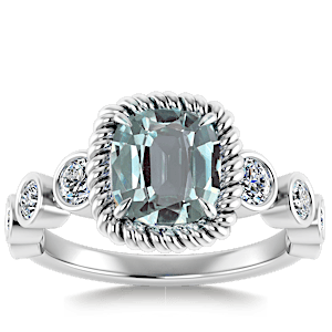 3.65ct Aquamarine set in Vintage Twilight Natural Diamond Ring