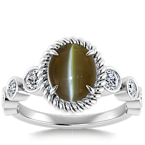 3.13ct Chrysoberyl set in Vintage Twilight Natural Diamond Ring