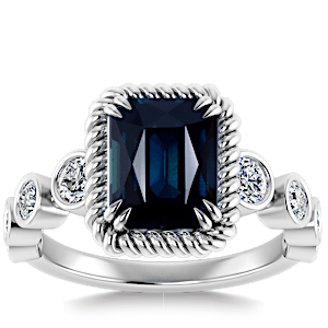 1.40ct Teal Sapphire set in Vintage Twilight Natural Diamond Ring