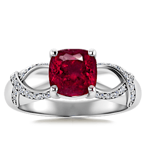 2.89ct Rubellite Tourmaline set in Halo Vined Natural Diamond Ring