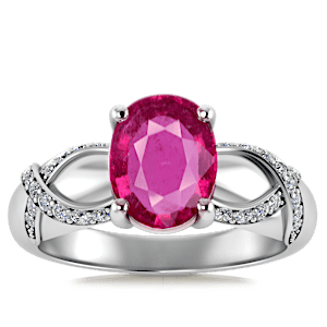 0.92ct Rubellite Tourmaline set in Vintage Twilight Natural Diamond Ring