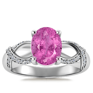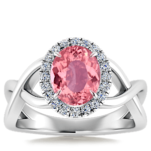 5.01ct Pink Tourmaline set in Halo Vined Natural Diamond Ring