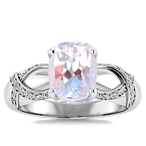 1.71ct Rainbow Moonstone set in Nature Entangled Vintage Natural Diamond Ring