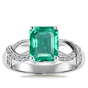1.60ct Zambian Emerald set in Vintage Twilight Natural Diamond Ring