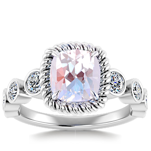 1.71ct Rainbow Moonstone set in Vintage Twilight Natural Diamond Ring