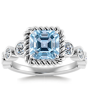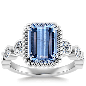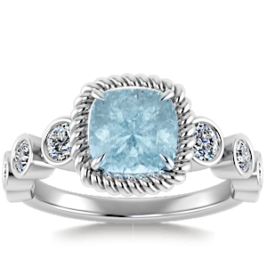 1.38ct Aquamarine set in Vintage Twilight Natural Diamond Ring