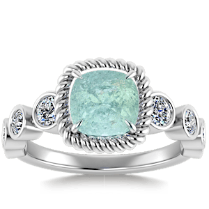 1.87ct Cuprian Tourmaline set in Vintage Twilight Natural Diamond Ring