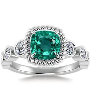 1.62ct Zambian Emerald set in Vintage Twilight Natural Diamond Ring