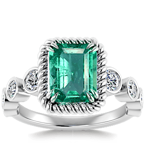 1.17ct Zambian Emerald set in Nature Entangled Vintage Natural Diamond Ring