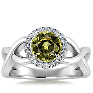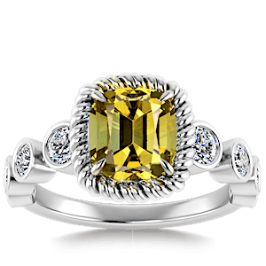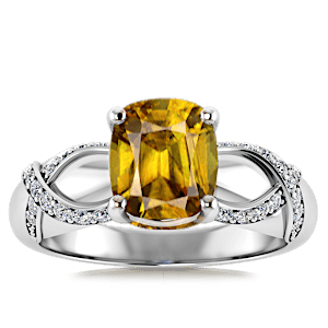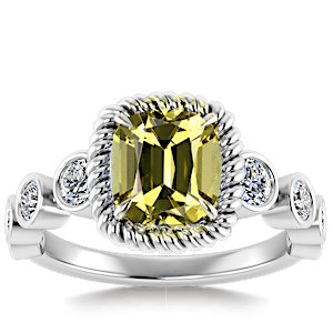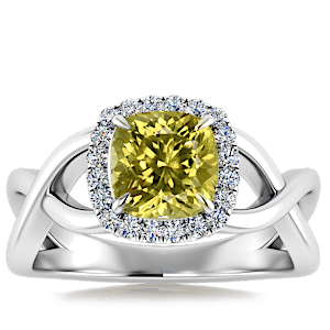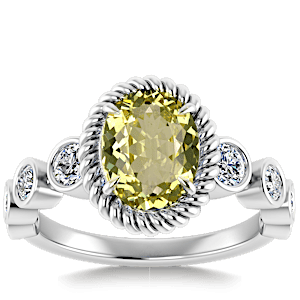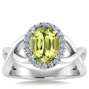 1.76ct Yellow Tourmaline set in Halo Vined Natural Diamond Ring