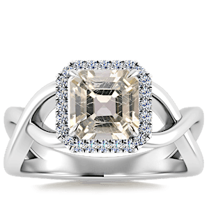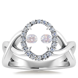 3.07ct Rainbow Moonstone set in Halo Vined Natural Diamond Ring