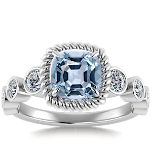 2.96ct Aquamarine set in Vintage Twilight Natural Diamond Ring