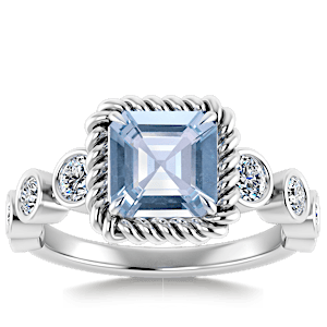 3.90ct Aquamarine set in Nature Entangled Vintage Natural Diamond Ring