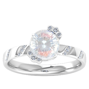 3.36ct Rainbow Moonstone set in Naturistic Avant garde Natural Diamond Ring