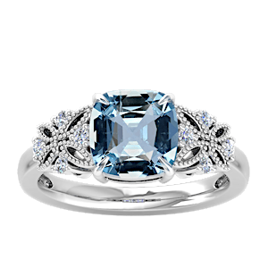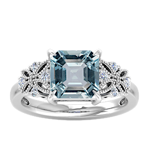 View Designs Instagram3.63ct Aquamarine set in Dual Butterfly Natural Diamond Ring