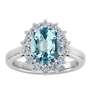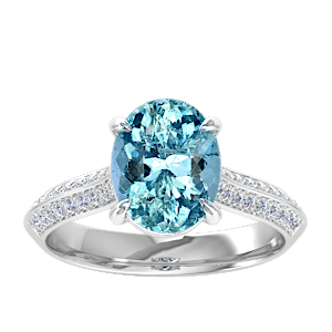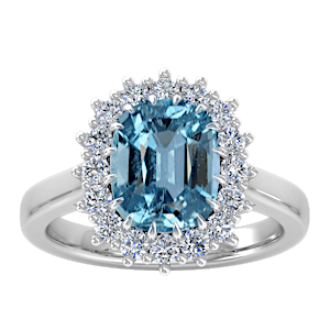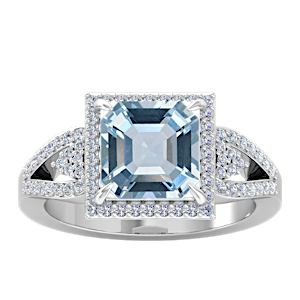 2.94ct Aquamarine set in Tri Split Shank Halo Diamond Ring