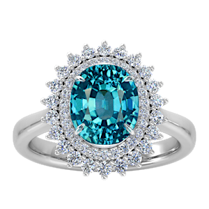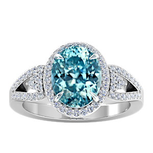 3.95ct Zircon set in Tri Split Shank Halo Diamond Ring