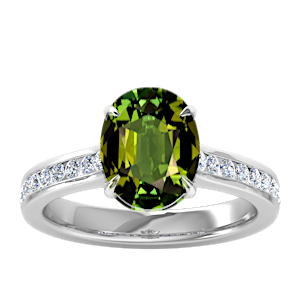 3.05ct Green Tourmaline set in Minimal Diamond Shank Ring