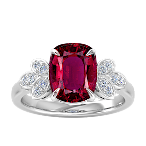 4.29ct Rubellite Tourmaline set in Tri Leaf Nature Diamond Ring