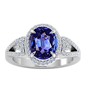 5.58ct Tanzanite set in Tri Split Shank Halo Diamond Ring
