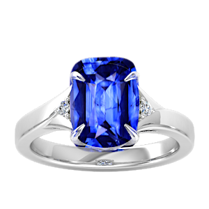 1.22ct Blue Sapphire set in Minimal Three Stone Diamond Ring