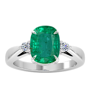 1.33ct Zambian Emerald set in Simple Three Stone Natural Diamond Ring