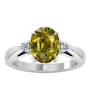 5.23ct Sphene set in Simple Three Stone Natural Diamond Ring