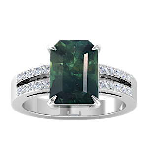 1.13ct Teal Sapphire set in Classic Split Shank Diamond Ring