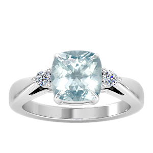 2.41ct Aquamarine set in Simple Three Stone Natural Diamond Ring