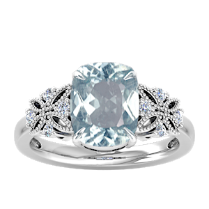 4.19ct Aquamarine set in Dual Butterfly Natural Diamond Ring