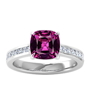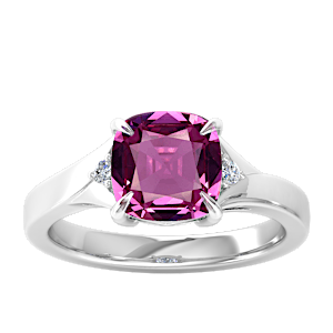 1.62ct Rhodolite set in Minimal Three Stone Diamond Ring