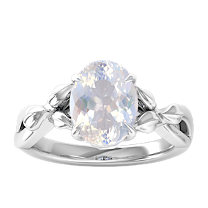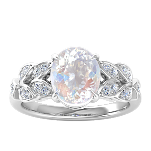 4.89ct Rainbow Moonstone set in Dual Leaf Vine Diamond Ring