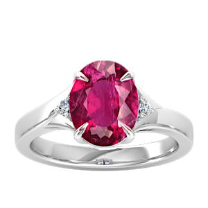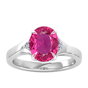 2.12ct Rubellite Tourmaline set in Minimal Three Stone Diamond Ring