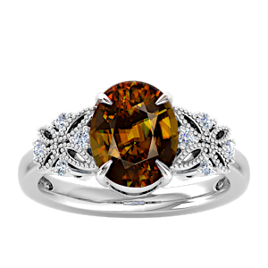4.07ct Sphene set in Dual Butterfly Natural Diamond Ring