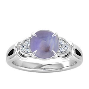 4.40ct Blue Moonstone set in Vintage Three Stone Diamond Ring