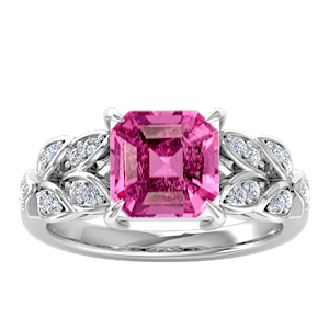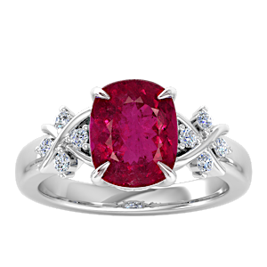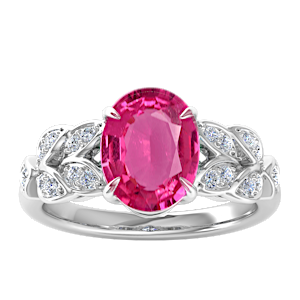 View Designs Instagram1.48ct Rubellite Tourmaline set in Dual Leaf Vine Diamond Ring