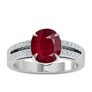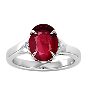 3.01ct Mozambique Ruby set in Minimal Three Stone Diamond Ring