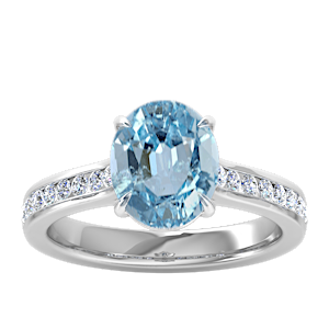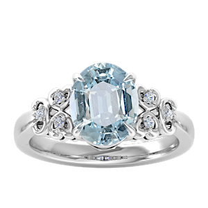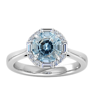 2.36ct Aquamarine set in Vintage Three Stone Diamond Ring