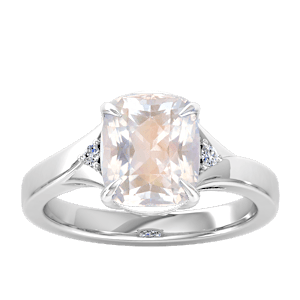 7.42ct Rainbow Moonstone set in Minimal Three Stone Diamond Ring