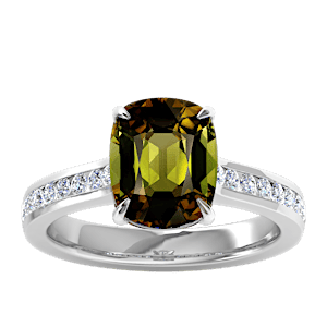4.00ct Sphene set in Simple Three Stone Natural Diamond Ring