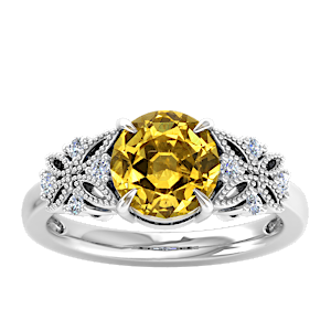 1.91ct Grossular Garnet set in Dual Butterfly Natural Diamond Ring