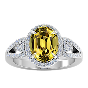 3.38ct Grossular Garnet set in Tri Split Shank Halo Diamond Ring