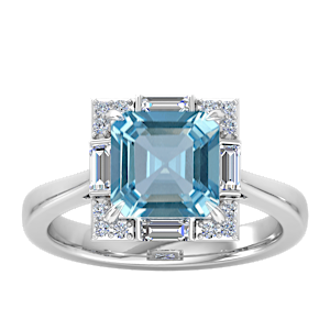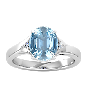 1.86ct Aquamarine set in Simple Three Stone Natural Diamond Ring