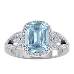 2.74ct Aquamarine set in Tri Split Shank Halo Diamond Ring