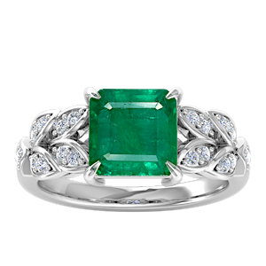 3.13ct Zambian Emerald set in Dual Leaf Vine Diamond Ring