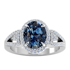 3.07ct Blue Sapphire set in Tri Split Shank Halo Diamond Ring
