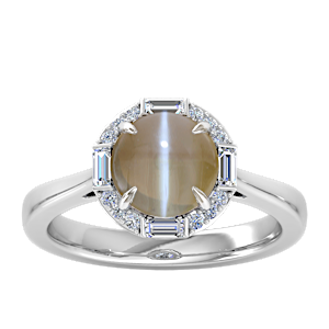 View Designs Instagram3.44ct Chrysoberyl set in Vintage Three Stone Diamond Ring