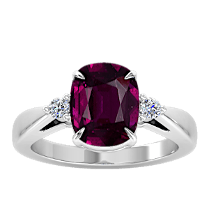 4.07ct Rhodolite set in Simple Three Stone Natural Diamond Ring