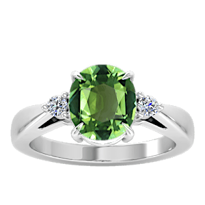 4.10ct Green Tourmaline set in Simple Three Stone Natural Diamond Ring